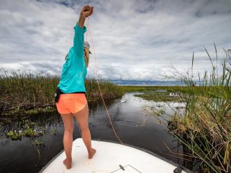 Higher up in the system, however, the top-water fishing, with floating lines, is very good. The pira pita bite has been consistent and, of course, we’re still seeing some great golden dorado come out of several of the channels in the marsh. Surubi catfish encounters have been another pleasant surprise. Although they don’t jump, they do fight brilliantly, with the larger fish typically pulling us into our backing.